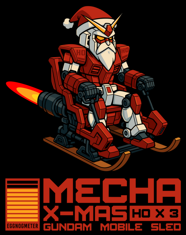 Meet MECHA X-MAS: HO × 3 — Gundam Mobile Sled, my new festive illustration that celebrates both the joy of Christmas and the absolute nonsense of over-engineered ideas.