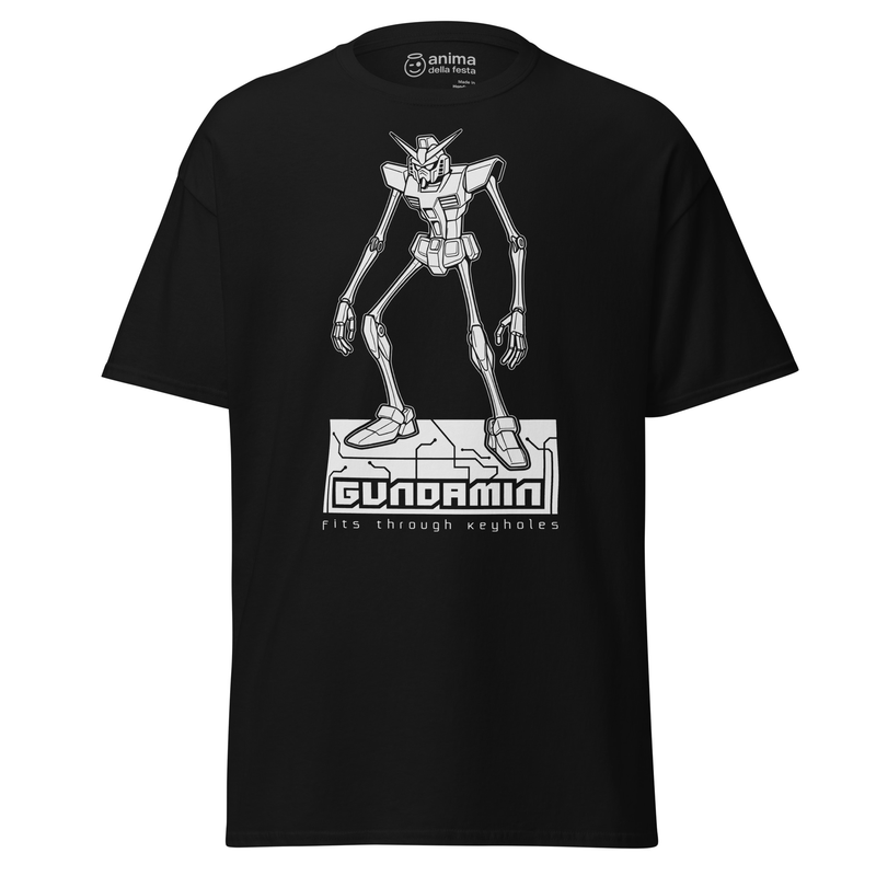 This hilarious parody t-shirt reimagines the legendary mecha as a lanky, noodle-limbed robot – so slim it could fit through a keyhole. With its spindly arms and legs, “GUNDAMin” is the perfect mashup of anime nostalgia and geek humor.
