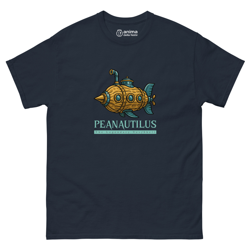 This Peanautilus tee reimagines Captain Nemo’s legendary submarine as a giant peanut shell vessel. A clever pun design mixing Jules Verne’s Nautilus with nutty humor, perfect for book lovers, steampunk fans, and anyone who enjoys quirky wordplay.