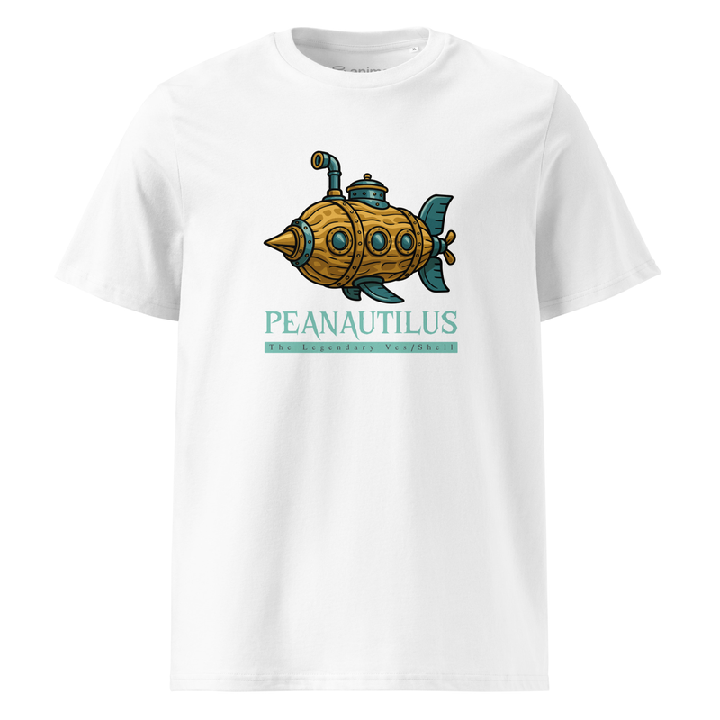 This Peanautilus tee reimagines Captain Nemo’s legendary submarine as a giant peanut shell vessel. A clever pun design mixing Jules Verne’s Nautilus with nutty humor, perfect for book lovers, steampunk fans, and anyone who enjoys quirky wordplay.