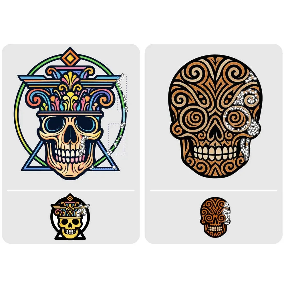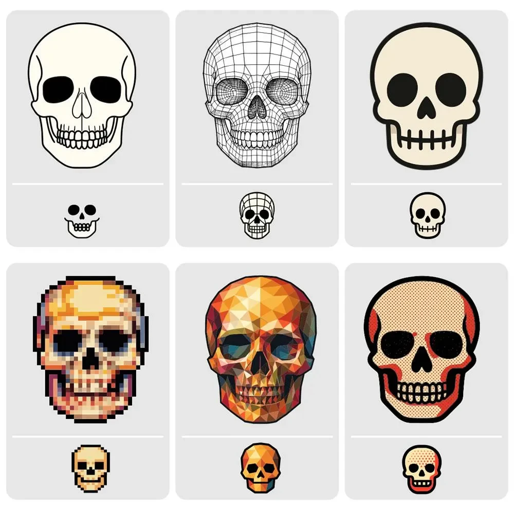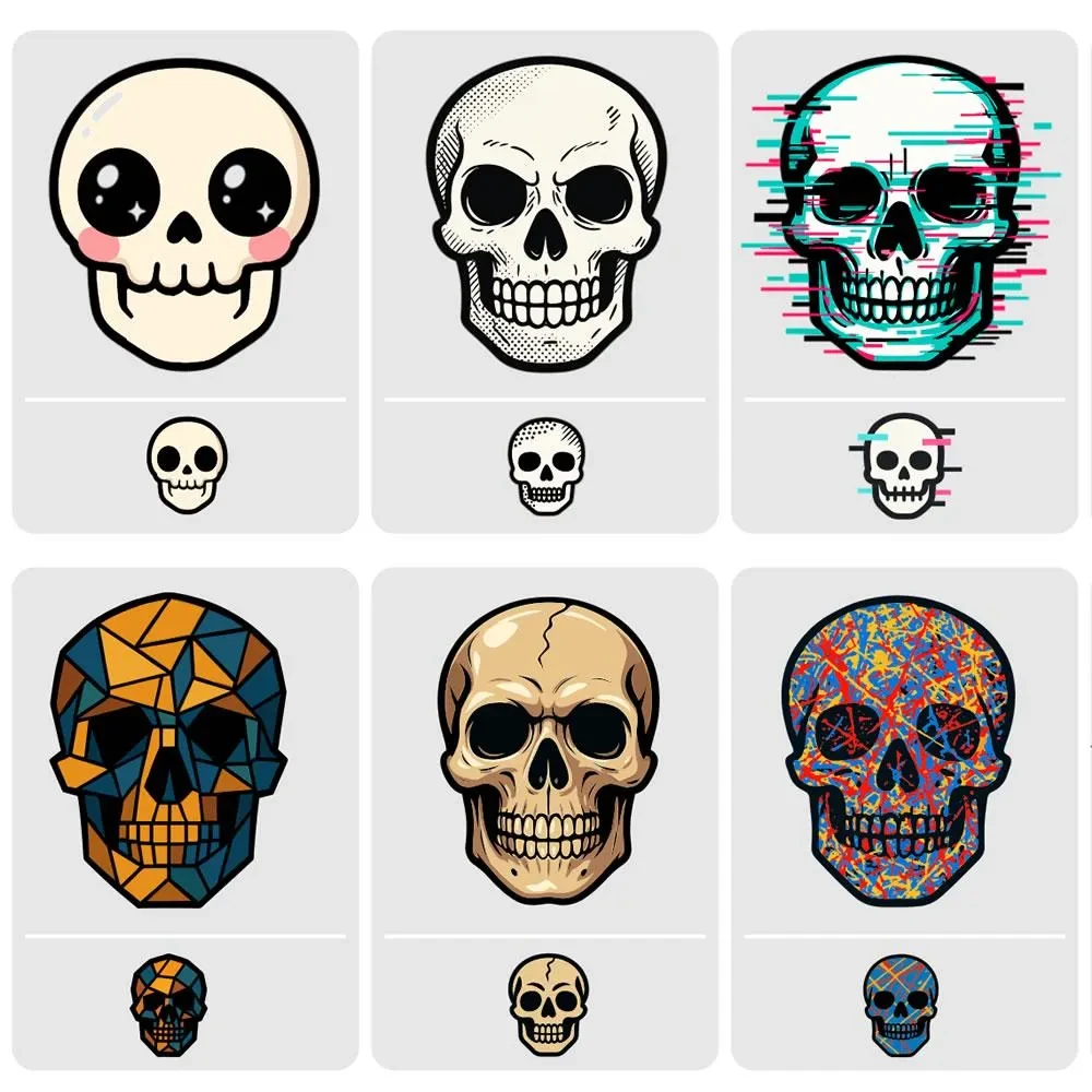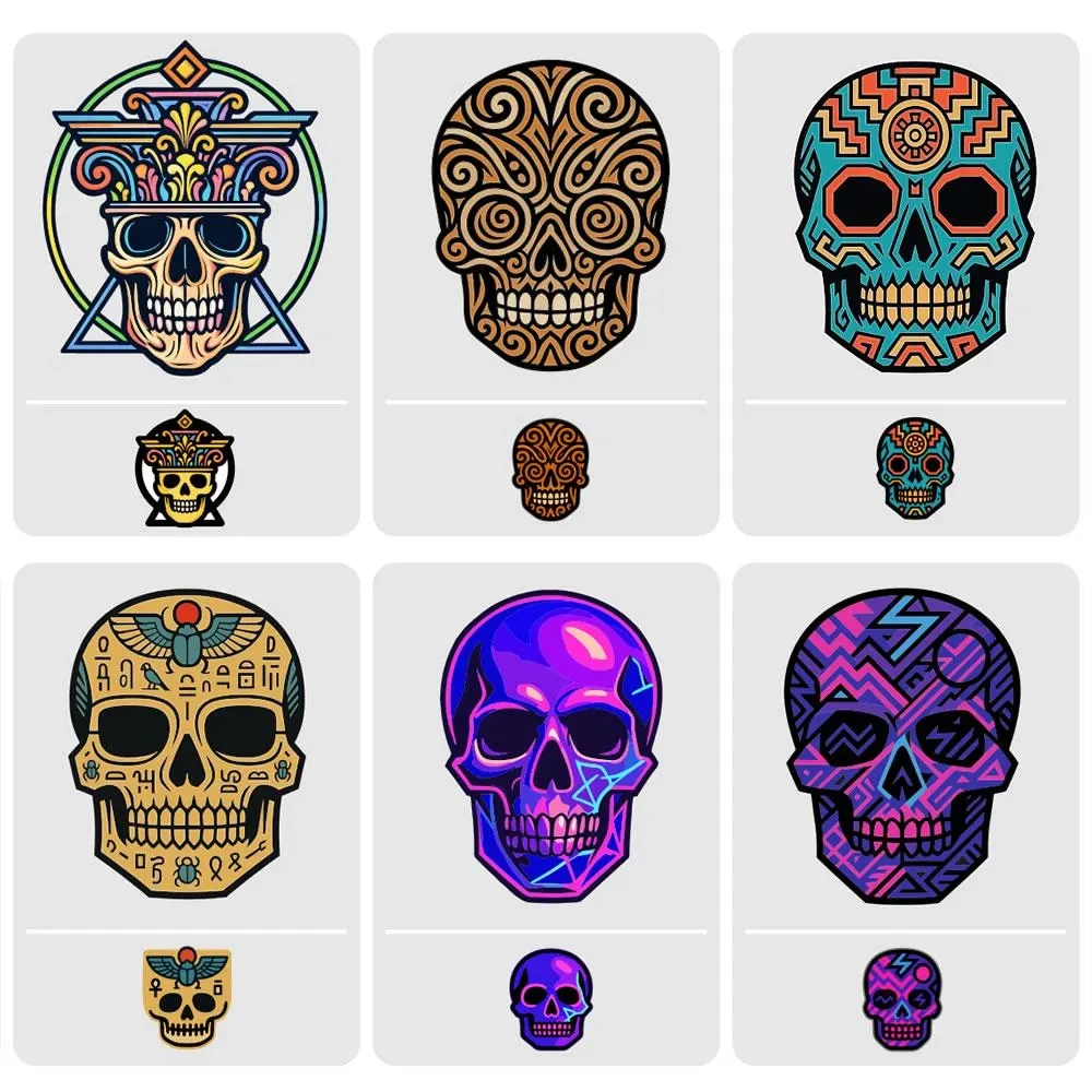 This collection includes 70 unique skull designs, each crafted in a different retro-illustration vector style — from geometric and pop-art to sugar skulls, vaporwave, and cyber glitch.